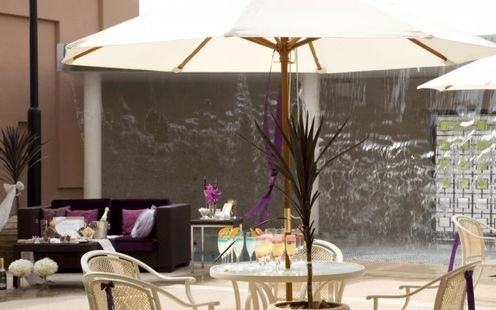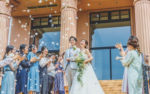 パーティ会場に隣接するプール付きガーデンではケーキカットやデザートビュッフェ、ゲストとの記念撮影などパーティ演出で自由に利用できるのが魅力。大切な家族、ペットと一緒のウエディングもOK。チャペルの大階段に続く空中庭園ではフラワーシャワーやバルーンリリースなどアフターセレモニーが叶います。