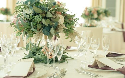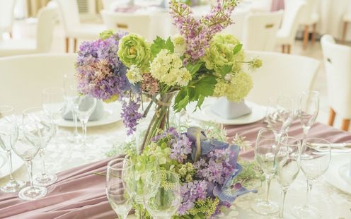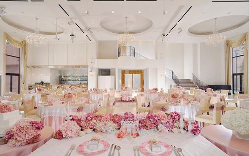 エントランスからパーティルーム、ガーデン、プールサイドまでふたりの憧れのイメージに沿って専属フローリストがセンスよくおもてなし空間を創り上げます。