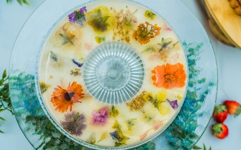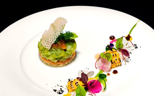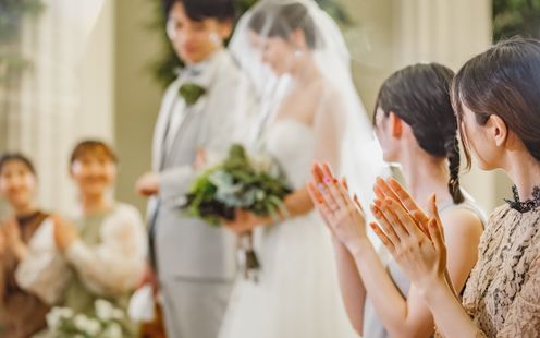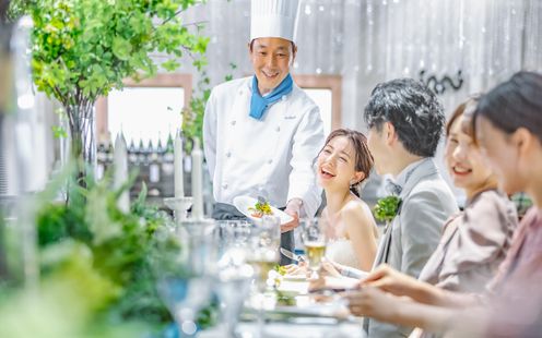 大切なウェディングパーティを彩る料理は、ゲストの顔ぶれやパーティイメージに合わせたオーダーメイドのコースをお作りします。完成したオリジナルのコースは事前に試食ができるので、納得してゲストへおもてなしができます。また、幅広い年齢層のゲストに喜ばれるよう、フレンチを箸でいただくことも可能です。目でも舌でも楽しめる料理がテーブルにサーブされるたび、ゲストから歓声が上がります。