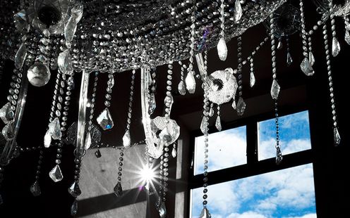 華やかさの中にも落ち着きがあるきらめくシャンデリア輝くパーティ会場