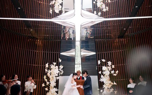 水と大自然に囲まれた熊本唯一のウエディングリゾートで、 360度祝福に包まれた開放的なセレモニーが実現できます。