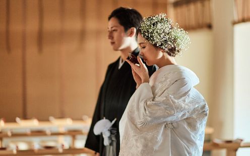 親族だけでなくご友人にも参列していただける神前式が叶う、伝統的ながらも洗練された「山の神殿」。