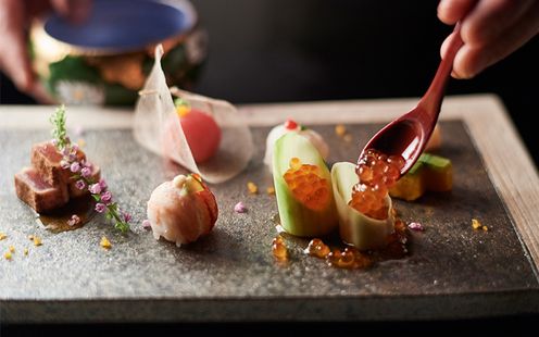 フレンチのシェフと和の匠が手をとりあい、最大限のアイデアと遊び心を注ぎこむことで、