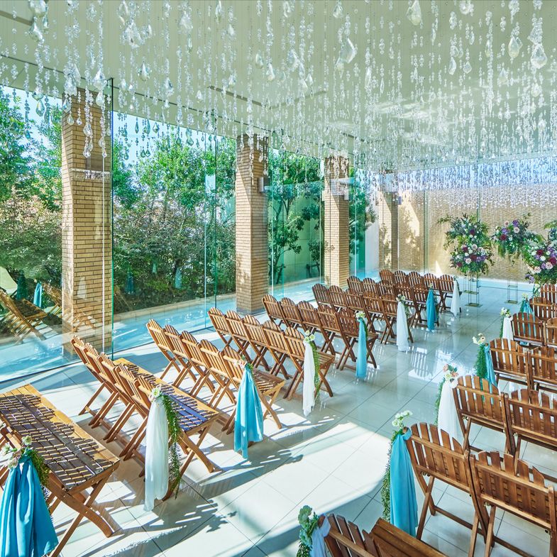 02.<ガラスに囲まれたチャペル>光と水が彩る透明感あふれる空間で自然が祝福するセレモニー