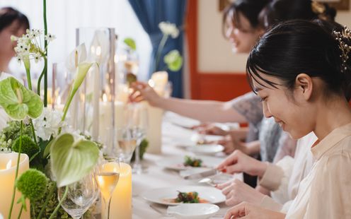 季節な花々や、ふたりの好きなカラーで光あふれる空間を自由にコーディネート。こだわりアイテムの持込みも可能なのでふたりらしくゲストをおもてなししてみませんか?