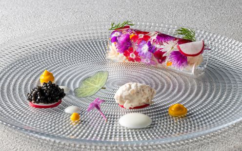 「懐石料理×フレンチ」を組み合わせた美食はここだでしか味わえない。20年以上愛され続けている、婚礼メニューはオープン当初から変わらない内容をご用意。ラ・ロシェルが突き詰めた最上のコース料理を皆様にご提供できるように。また、記念日などレストランにお越し頂いた時も ”結婚式の時に食べた料理” を愉しみながら、想い出に浸って頂けるように。レストランだからこそ叶う一流の料理・サービスで素敵なひと時をご提案
