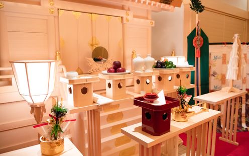 総檜造りの和が香る、オークラ旧本館の伝統を受け継いだ「神前式場」で厳かな神前式が叶います。