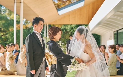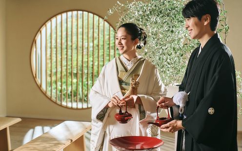 伝統を重んじる雰囲気と、木の香りが心地よい空間で行うオリジナルの和装人前式