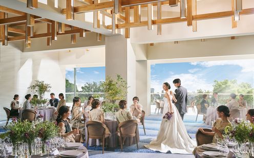 開放的な最上階にあるワンフロア貸切会場!広いテラス付きの陽光あふれる空間で寛ぎの一日を