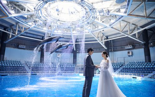 総合エンターテインメントホテルである同ホテル「マクセル アクアパーク品川」内での【1日1組限定のドルフィンウエディング】。