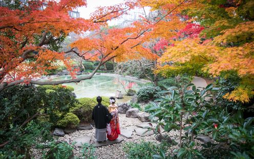 四季折々の風情が訪れたゲストをリラックスさせる最大のおもてなしに。港区の有形文化財に指定されている本格的な和のスポットが随所にあり、洋装も和装も映えるフォトスポットです。