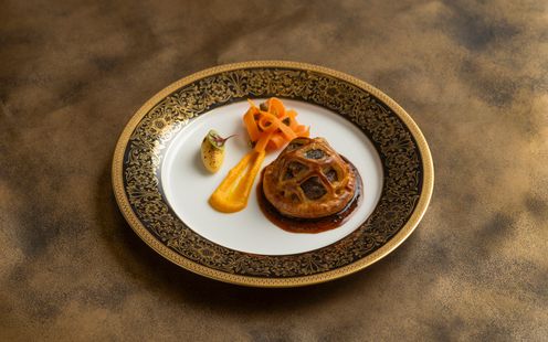 旨味を重ねた高輪自家製のコンソメスープや代々受け継がれてきた和牛フィレ肉のパイ包み焼き。