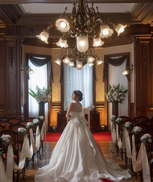 明治の洋館にしつらえられた重厚感あふれるウエディングチャペル