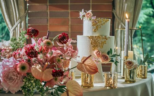 ベージュの壁に金の装飾が美しい、上質な空間「麝香(じゃこう)」で洗練された大人なウエディングが叶います。親しい友人や家族を招いてアットホームなパーティを。