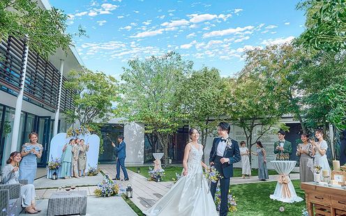 外の喧騒を感じさせない開放感たっぷりのガーデンでふたりらしい演出を!