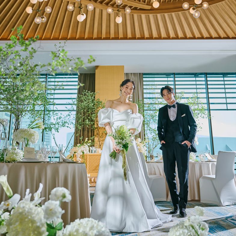 【成約特典内訳】●1泊2日1部屋エグゼクティブスイートご招待 ●テーブルコーディネート割引 ●ペーパーバック50%OFF ●衣装&美容 特別パッケージ適用 ●装花最大10%OFF 2026年5月~7月限定プランです。詳しくはお問い合わせください。