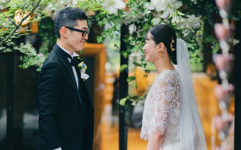 自然光がたっぷりと降りそそぐ中庭は、ウエディングドレス姿をさらに引き立たせ、ふたりらしい挙式を演出します。