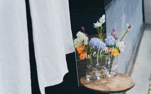 1日1組完全貸切なので、会場コーディネートはもちろん、入り口や中庭もふたりらしいスタイリングが可能。
