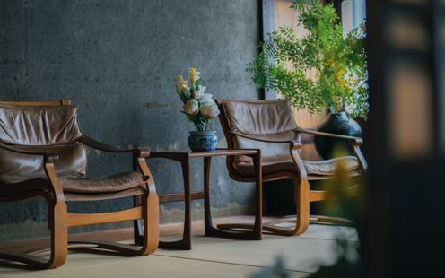 かつて酒の種麹菌「もやし」の栽培所として使われていた建物をリノベーションした「もやし町家」には、モダンなフォトスポットがたくさん。