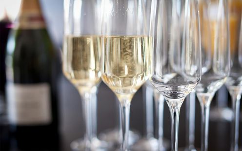 祝福の象徴であるシャンパンの泡をイメージしたオブジェが 光を受けて煌めく美空間