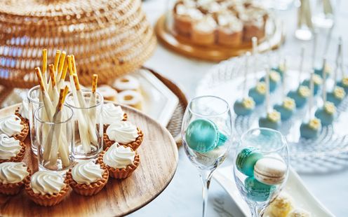 厳選した素材からつくられるアマンダンブルー青島の料理は、地産地消のおもてなしがこだわり。幅広い年代のみなさまに安心してお召し上がりいただける”和洋折衷”をご用意しております。メインダイニングに併設されたガーデンテラスでは、その場でシェフが焼き上げるメインの肉料理、デザートビュッフェなど、目にもおいしい演出をご提案いたします。美しさもおいしさも、食べる人のことを想う気持ちがあってこそ。シェフがおふたりと相談しながら、おもてなしのご提案をいたします。