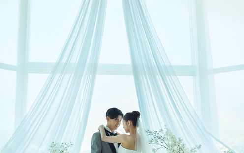 海や空を思わせるブルーを基調としたコーディネートやエバーグリーンのナチュラルで爽やかなコーディネートなど、ここならではのロケーションを活かしたコーディネートが人気です。もちろんおふたりのご希望に合わせてご提案させていただくことも可能です。お気軽にご相談ください。