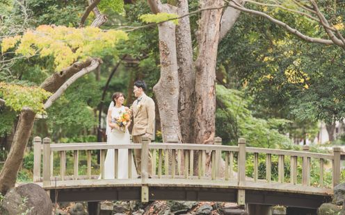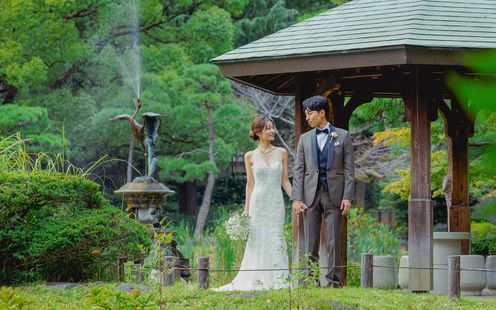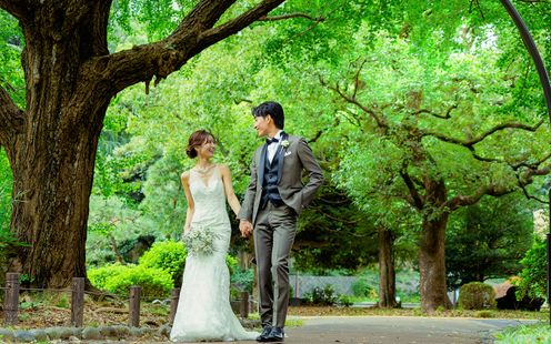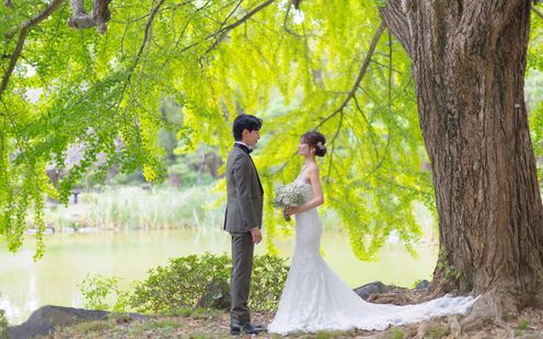 都心の真ん中にありながら、四季折々の自然に包まれる日比谷公園。その豊かな緑と歴史ある景観を舞台に、日比谷パレスならではの上質な前撮りが叶います。柔らかな木漏れ日、風に揺れる木々、季節ごとに表情を変える花々が、おふたりの自然な表情を美しく引き立てます。クラシカルで洗練された日比谷パレスの佇まいと、開放感あふれる公園の景色が重なり合い、写真一枚一枚に物語が宿ります。時を超えて色褪せない、心に深く残る特別な瞬間を、ここ日比谷で。