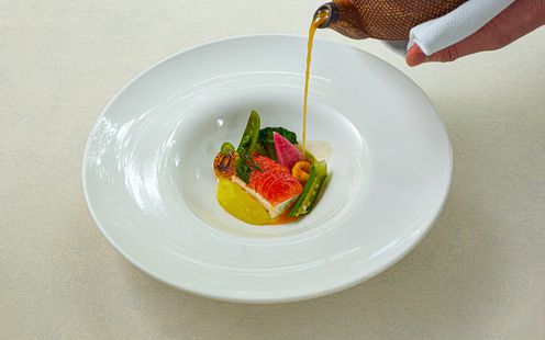 厳選野菜を盛り込んだオリジナルフレンチ。食材の旨味を引き出したヘルシーな味わい。