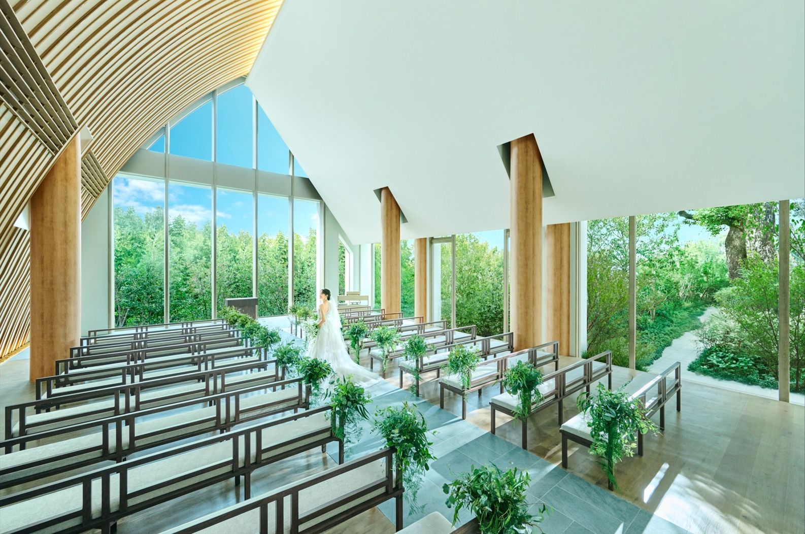特徴 | ついに【25年11月NewOpen】熊本の豊かな自然に囲まれた新たなランドマーク誕生 | 緑豊かな森に抱かれた白亜の邸宅を全館貸切!ふたりらしさ満点の挙式&パーティを叶えよう | 南フランスに実在する協会をモデルに創られた荘厳な雰囲気を持つチャペル | 緑に包まれた石畳と穏やかな光に包まれた教会はまさに森の中の教会 | ||