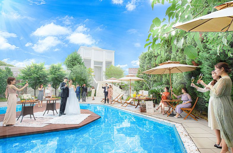 02.【全館貸切でふたりらしく】広大なガーデン&プールもふたり占め!演出やコーデも自由自在