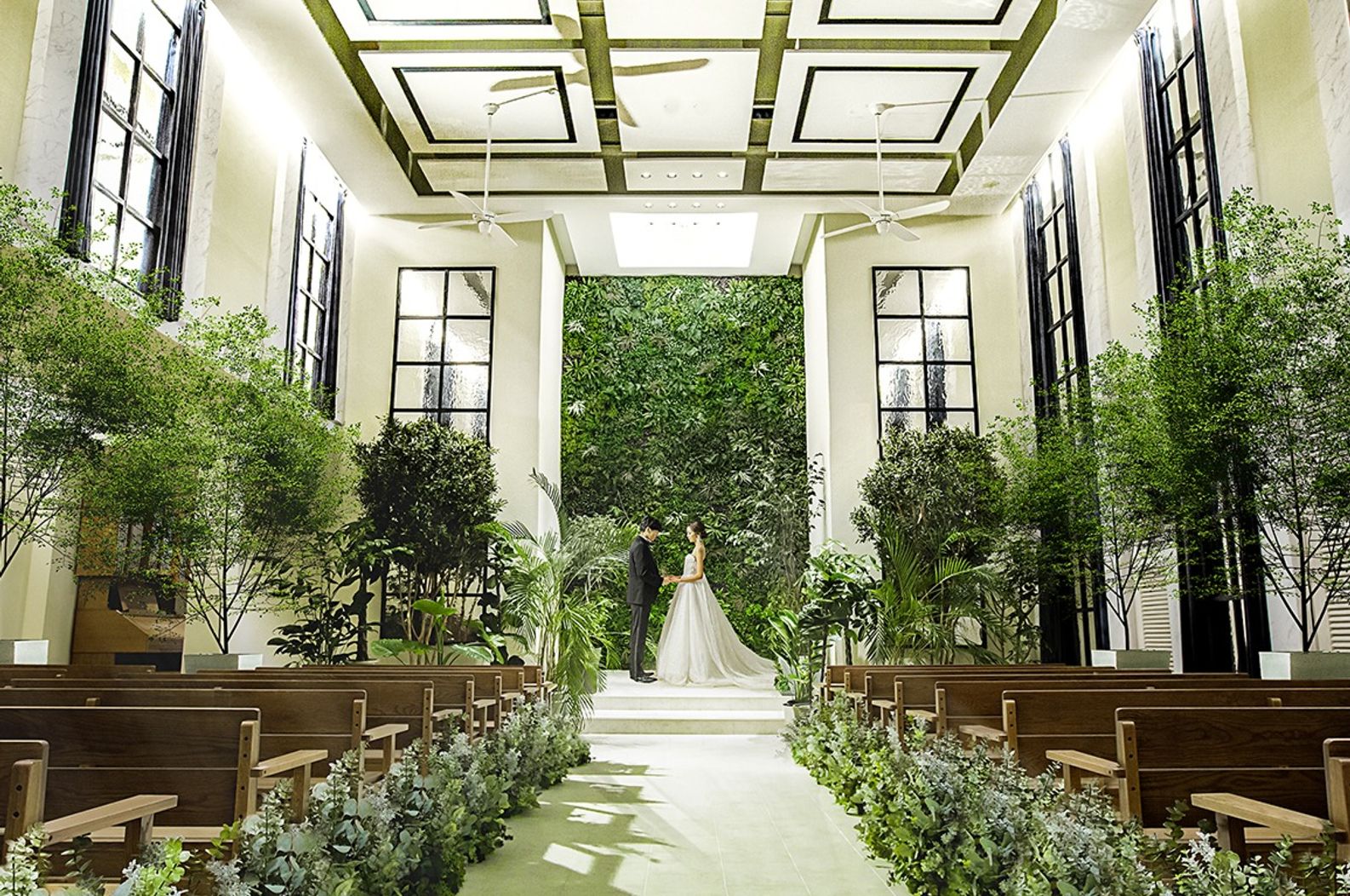 03.【独立型チャペル】グリーンウォールが印象的な空間は開放感抜群!ドラマチックな誓いを