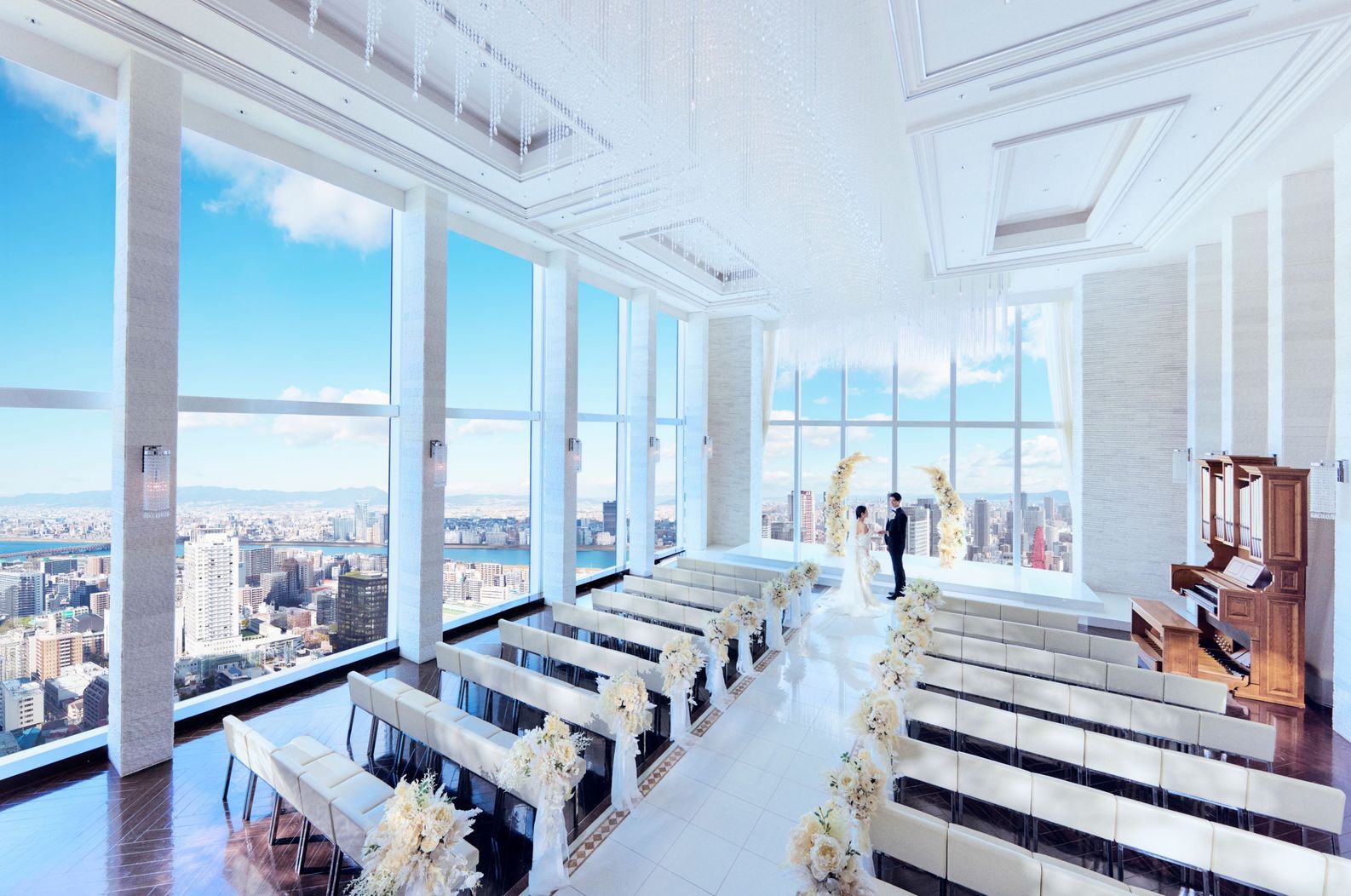 特徴 | 【JR大阪駅の最上階】好アクセス&駅直結の専用エレベーターで繋がる大阪No.1の立地 | 【2025年★うめきたにグランドオープン!】大阪駅から直結◎グラングリーン大阪に誕生 | 【JR大阪駅直通】話題の新ランドマーク、グラングリーン大阪内にGRAND OPEN! | 【大阪梅田駅から徒歩1分】11年連続口コミランキング受賞!25年大阪チャペル総合1位 | 【大阪駅直結】国内外の数多くの賞を受賞したラグジュアリーホテルで上質なおもてなし | 上品なシャンデリアが耀くモダンな雰囲気の少人数専門のチャペル。 |