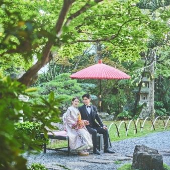 金沢市指定文化財でもある辻家庭園では和装のパーティも人気!花嫁のみ着用することの許された白無垢や色打掛を着て、日本らしさを演出して。おふたりのスタイルに合わせてご提案させていただきます