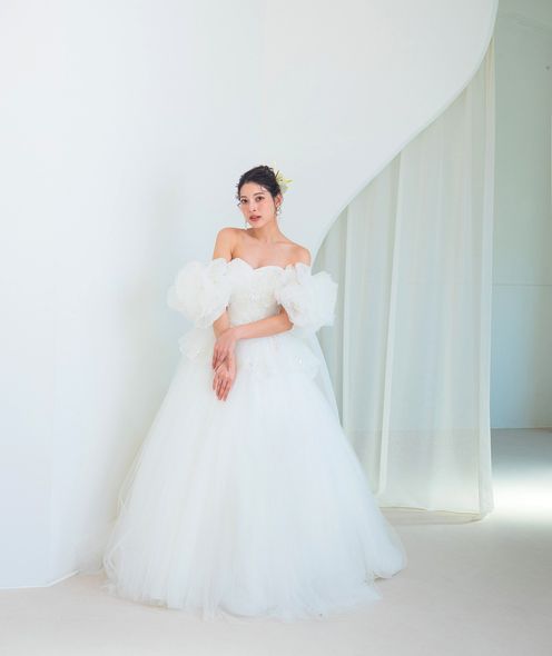経験豊富なスタイリストが花嫁に寄り添い、シルエットや素材感まで徹底的にこだわって提案します。スタイリスト兼デザイナーが在籍しているため、花嫁の声を反映したオリジナルドレスが次々と誕生するのも大きな魅力。