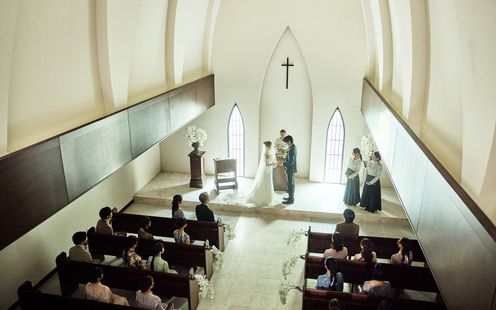 緑に囲まれた独立型教会で牧師先生とのカウンセリングで作り上げる、本格的な挙式が叶う