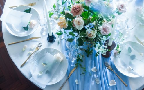 プランナーと相談してふたりの幸せな一日をトータルコーディネートでお愉しみください。ふたりらしいこだわりのアイテムを会場にセッティングしてゲストを上質な雰囲気に誘います。ウエルカムスペースから品格漂う空間演出でゲストに寛ぎのおもてなしを。