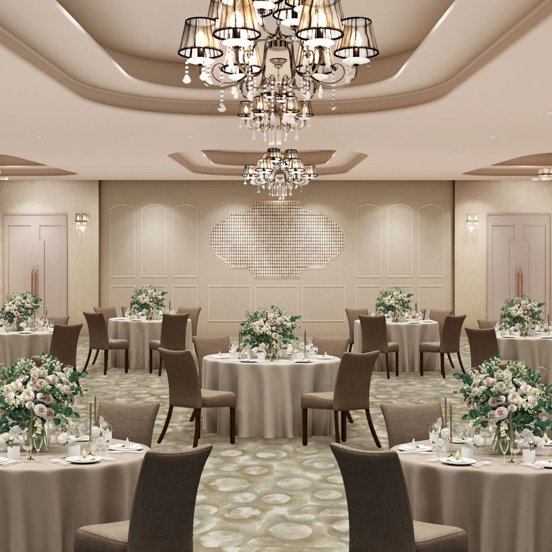 会場の名前の通りバラのシャンデリアがとてもラグジュアリーな会場です。