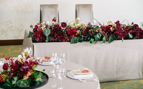 おふたりのイメージや希望を伺いながら、専属のフラワーアーティストがおふたりだけのオリジナル空間をご提案。ゲストが会場に入った瞬間、「素敵!」「ふたりらしいね!」と感じていただけるコーディネートをお創りします。