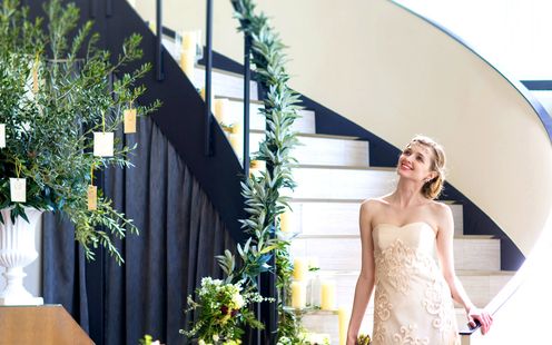 チャペル・親族控室と同フロアにあるパーティ会場なので移動も楽々。天井高は7mにもおよび、自然光が降りそそぐ開放的な空間です。ゆったりスペースがとれるレイアウトで心ゆくまでゲストをおもてなしできます。螺旋階段からの入場も人気の演出の一つです。さらにウェルカムスペースでゲストと過ごす時間もお愉しみいただけます。また、大型スクリーンによる大迫力で写真や映像を流せるのもポイントです。※30名以下のパーティも可能ですので気軽にお問い合わせください。