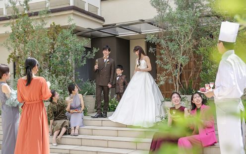 感動的な挙式の後は、プライベートガーデンでゲストと楽しいひと時を