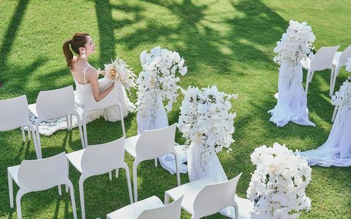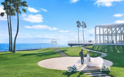 光溢れる海を一望する広大なガーデンでのセレモニー
