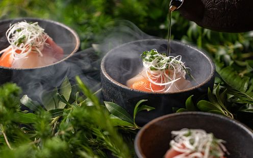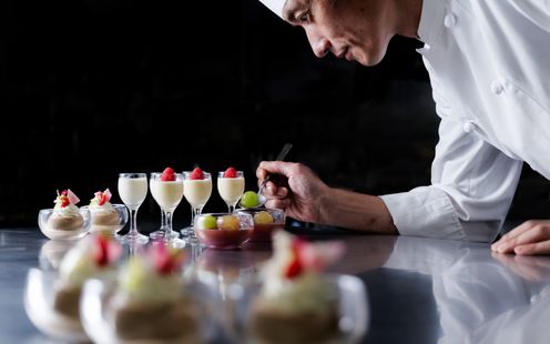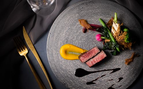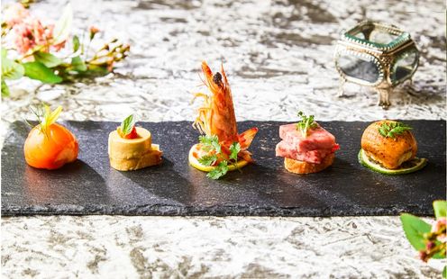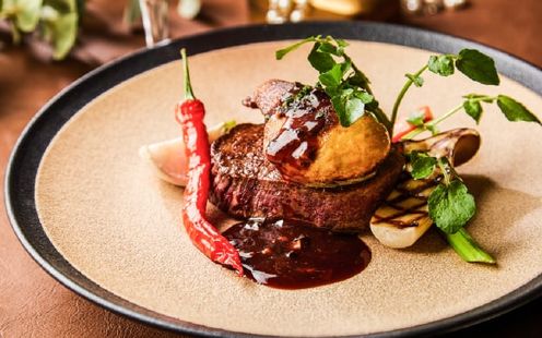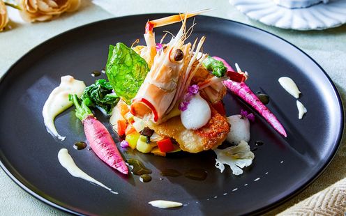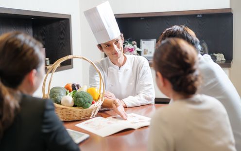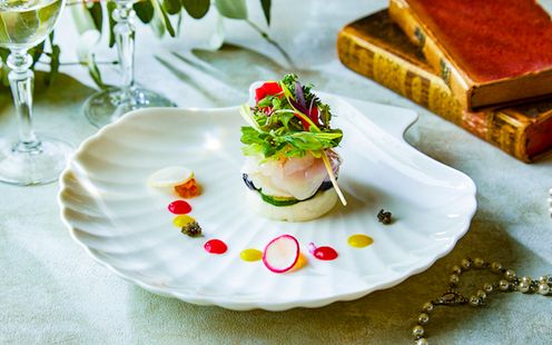 厳選された日本各地の旬の素材や、世界各地の味覚を取り入れた季節料理のフルコースで大切なゲストをおもてなし。季節ごとにデッサンから仕上げる「フォーシーズンズ・フレンチ」を提供。オードブルからデザートまで、それぞれ3種類の厳選メニューをご用意しております。ゲストの顔ぶれを考えながらふたりでセレクトし、オリジナルコースメニューを完成させていただけます。お箸でいただけるフレンチなので年配ゲストにも安心です。