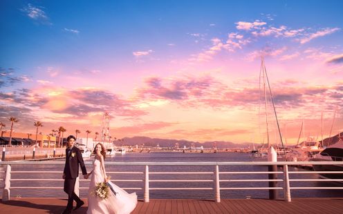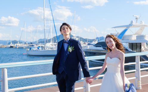 瀬戸内海に沈む夕陽を感じながらのフォトタイムはまるで海外のリゾート地を旅する気分。デイタイムも、マジックアワーも存分に非日常を体感いただけます。
