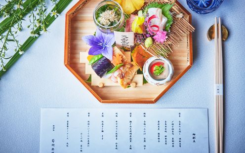 仕込みに4日間、食べごろになるまでに6日間。アマンダンライズの料理は挙式の10日前から始まります。素材によって、調味料を使い分け、1秒、1℃、1gまで拘りぬいた至福の料理をおつくりいたします。またデザイナーが厳選した器や盛り付けは、見るものを魅了する、五感を覚醒させるひと皿となりました。料理でも幸せと感動を味わっていただけるよう、手間暇を惜しまずにご提供いたします。