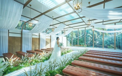 <自然光&緑に包まれたスカイチャペル>全天候型で雨の日も明るく安心!