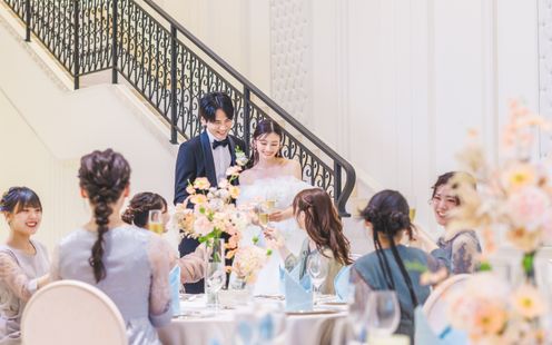 おふたりの衣装をはじめ、会場のコーディネートでおふたり色に染め上げることのできるパーティ会場。