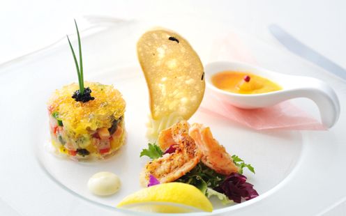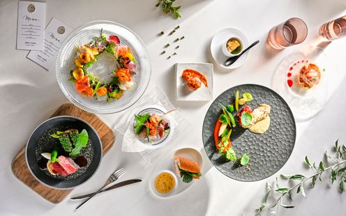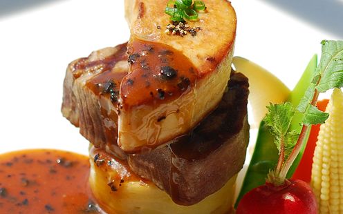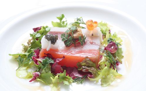 私たちはFarm to Table のコンセプトのもと地元の食材を大切に、農場から直接仕入れた新鮮で安全な食材を使用しています。海産物は福岡の食材のほか、北海道知床の羅臼町から新鮮で最高級の食材が届きます。産地の方々と協業しフードロス問題に取り組みながら、 シェフ自ら産地へ足を運んで旬の素材を厳選し仕入れています。 そんな旬の厳選素材を贅沢に使って創作する「ジャパニーズキュイジーヌ」に、日本の四季折々のおいしさを盛り込みます。素材の力を引き出した、世代を問わず愛される料理で、ゲストの記憶に残る幸せ溢れる時間をお手伝いします。
