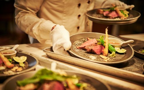 「料理といえばアルカディア」がお届けする 地産地消の絶品料理の数々はそれぞれのオープンキッチンよりダイレクトにサーブされます。