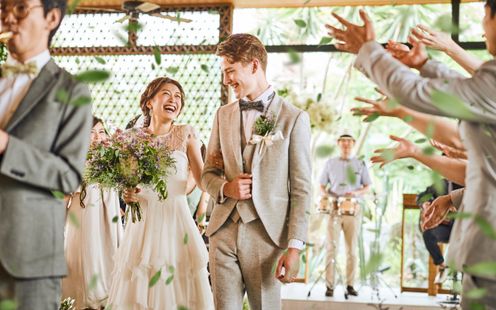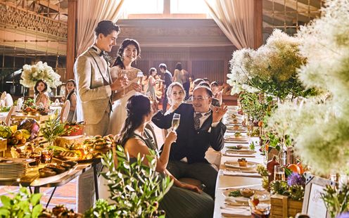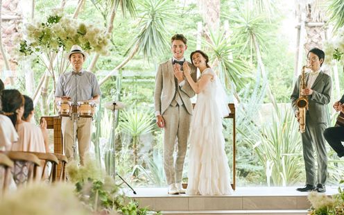 カルフォルニアのグリーンたちと暖かな陽の光に包まれた、リゾート感溢れるチャペルは、地元の伝統工芸技術を駆使し細部までこだわった装飾や、自由なセレモニースタイルが人気です。パーカッションやギター、サックスの軽快なサウンドで、カジュアルで賑やかなセレモニーを叶えます。
