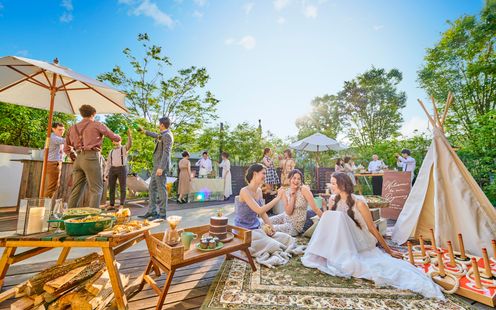 ガーデンでは、デザートビュッフェやバルーンリリース、花火などでアットホームに過ごせます